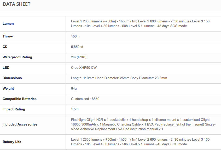 Olight H2R Nova NW 2000 lumen, 153m Throw - Neutral White- FREE SHIPPING