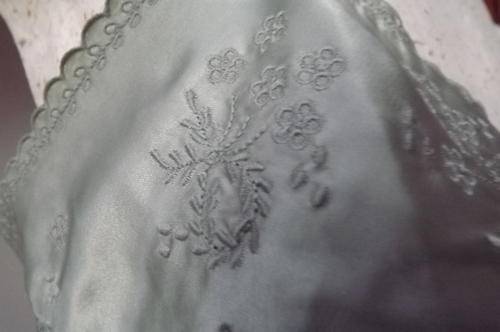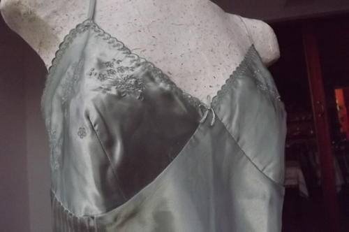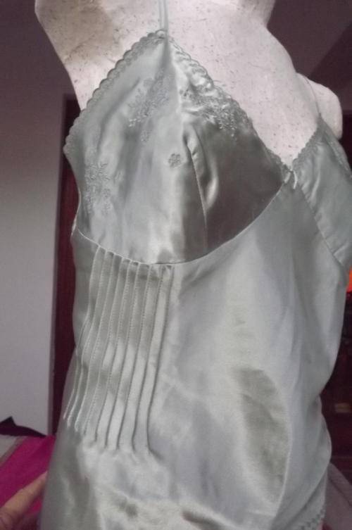 Light Olive Green Sikly Camisole with embroidery work in size 38 - length from under arm - 39cm