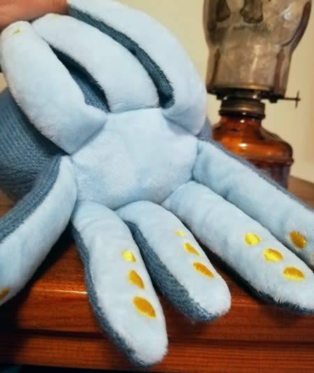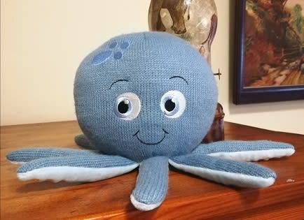 Soft blue knitted material on top and super soft, blue velvet underneath with sewn gold spots.