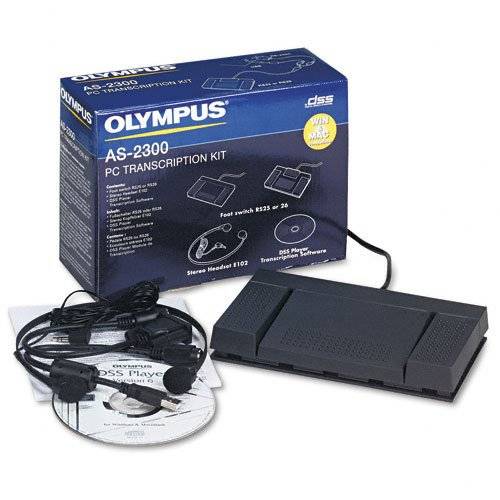 The Olympus AC-2300 PC Transcription Kit is ideal for transcription of digitally recorded documents. The kit includes DSS Player software, the RS-25 foot pedal, and the E-102 stereo headset.