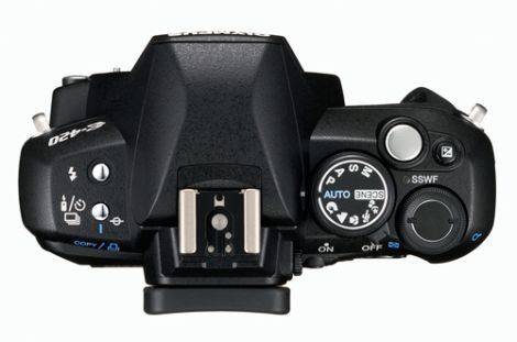 The Olympus E-420 is the most 'junior' member in Olympus line of digital SLRs. , exactly one year after the launch of its predecessor, the E-410. Like the E-410 it comes with a 10 megapixel resolution, live-view and the SSWF dust reduction system; and like its predecessor at the time it is also the currently lightest and smallest digital SLR on the market, especially if you combine it with the Olympus Zuiko 25mm pancake lens that has been launched at the same time. All in all the E-420 is only a relatively minor update but it does also incorporate a number of new features.