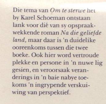 OM TE STERWE - KAREL SCHOEMAN (1 STE UITGAWE 1976)