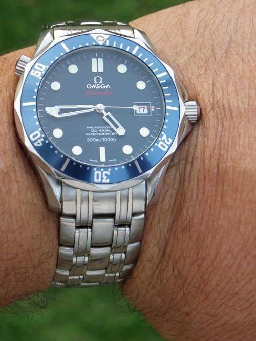 Omega Seamaster James Bond Professional co-axial chronometer . Stainless steel case on stainless steel bracelet with deployment buckle. Case diameter: 41mm. Waterproof up to 300m. Includes box as pictured, will fit upto a 19cm circumference wrist