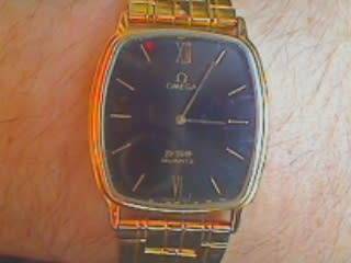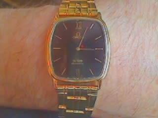 Omega De Ville gents watch works 100% !!!!! The face on the right side shows some signs of tarnishing and the glass has some scratches on i would rate it 6.5 out of 10!!!!!! The strap is a aftermarket strap. Please see photos !!!!!! Time adjusts electronically.