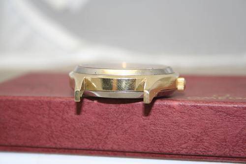 This watch is in good working condition and is running well; however, as with most vintage timepieces a service may be required. The water resistance of this watch is not tested or guaranteed. The watch is fitted with a 23 jewel Omega automatic movement calibre number 1012. The watch is a reference number CD 166.0128. It has a central sweep-second hand and a date function. The gold cap on the watch is in good condition and shows no signs of wearing through.