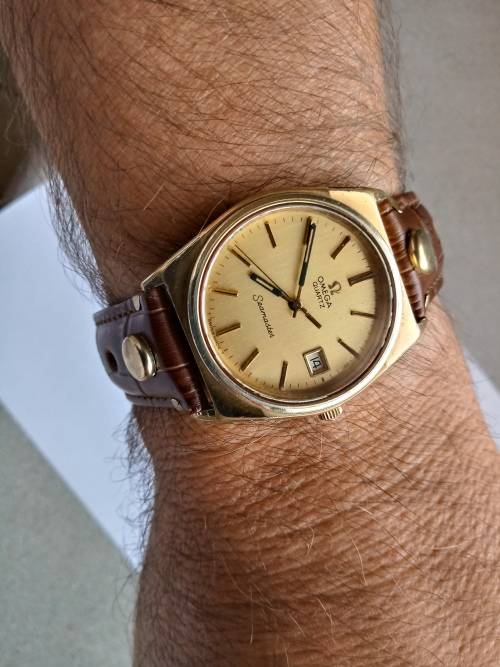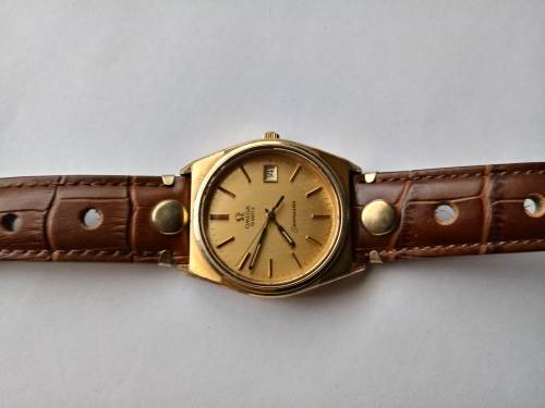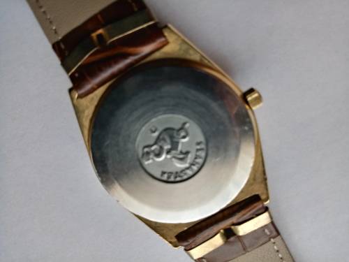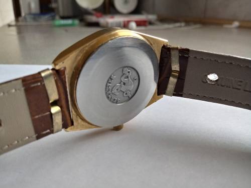 Beautiful piece. Plating overall in good condition. Minimal signs of ageing, as can be seen from pics. Sapphire crystal. Aftermarket leather strap. The watch has some funky, but not so funny way, of setting the minute hand. A small push-inn, built-inn button in crown has to be depressed, and then the second hand spins at double speed. In order to set the minute hand you then need the hand-eye coordination of Mohammed Ali, in his prime, to get the setting right. The inside pin sometimes got stuck as the piece was in storage for many years. It has been lubricated by a watchmaker whilst servicing the watch. With use, It should sort itself out eventually. But there is a way to work around this if needed. To set the minutes correctly, use the crown and advance an hour. Keep the crown in out position. Take a quick catnap...and when the hour cometh , so cometh the man! Push back crown. And there you go! The watch is on time within 15 or so seconds per day! This exercise should be therefore not required too often. Free shipping!