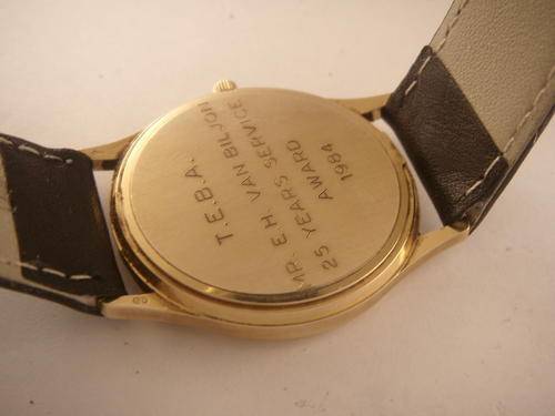 condition 80% LIGHT SCRATCHES, DIAL AND GLASS NEAT, ENGRAVING ON CASE BACK WORKING OK, AFTERMARKET STRAP AND BUCKLE