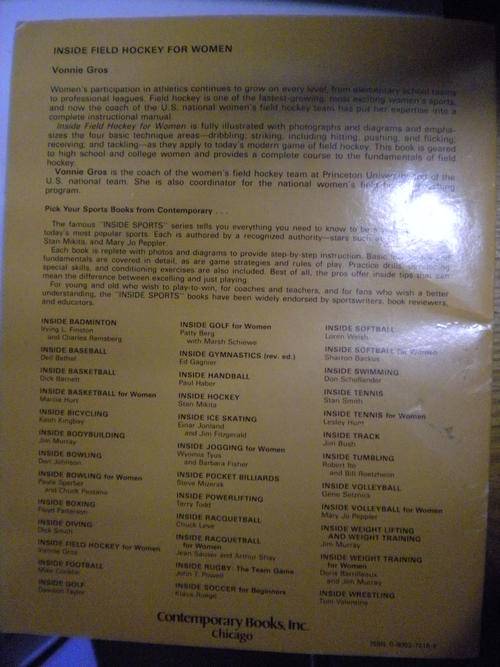 Inside field hockey for women by Vonnie Gros. Fair condition.