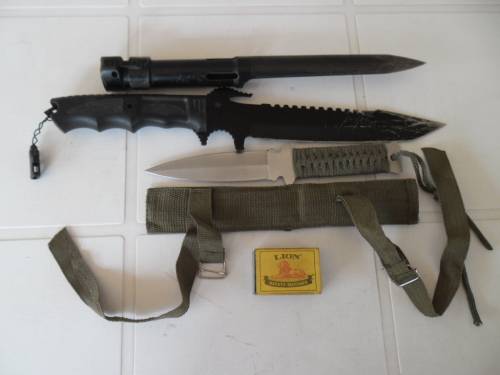 one bayonet and two large knifes