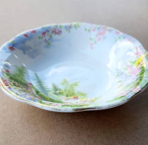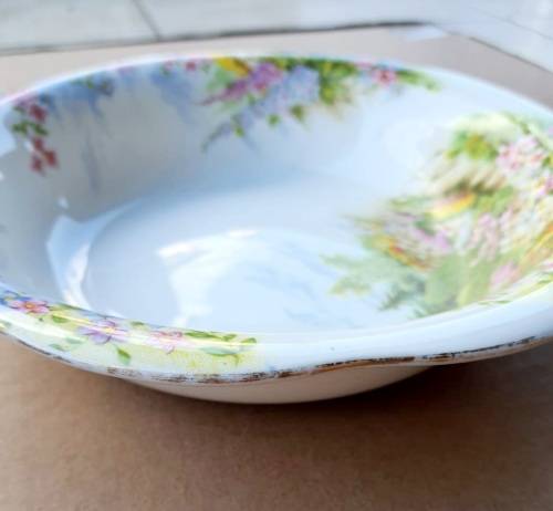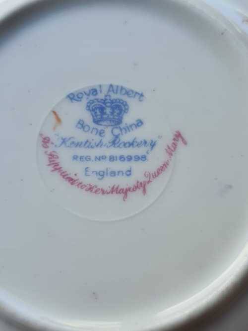 Desirable set. You will notice 2 different registration numbers. One is for the serving bowl and the other is for the pudding dishes. Gilt a bit thin in places. No cracks or chips