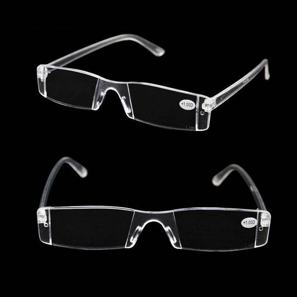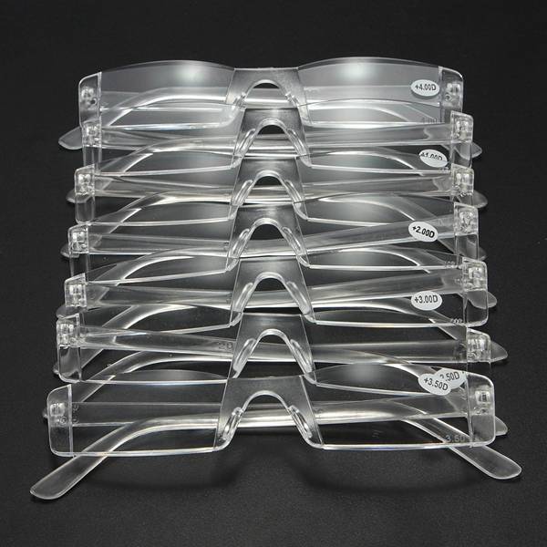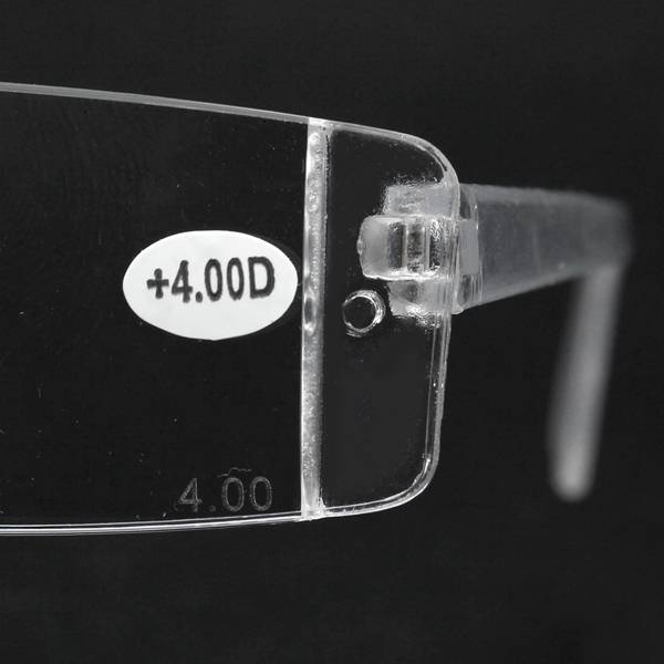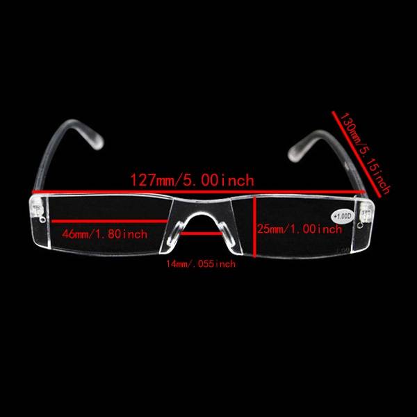 Features: 1. Super lightweight reading glasses 2. One piece frame and lens design provides excellent durability 3. Precision acrylic lenses, scratch resistant 4. Fashionable rimless look, silver metal templates, fit most face shapes and size