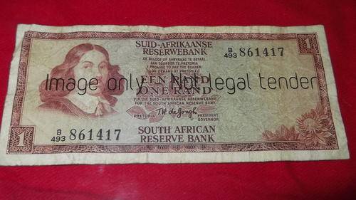 One Rand South African Bank Note Signed T W De Jongh B493 861417