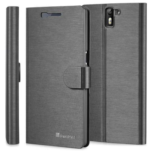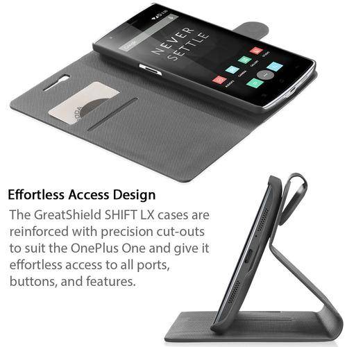 OnePlus One Wallet Case - GreatShield [SHIFT LX] Slim Leather Flip Cover Case for OnePlus One (Black)