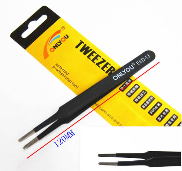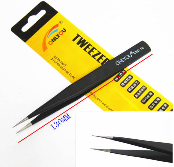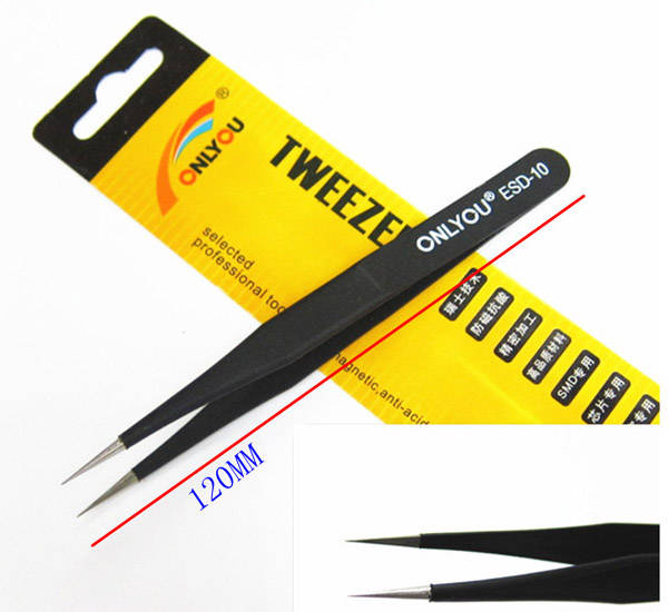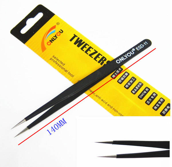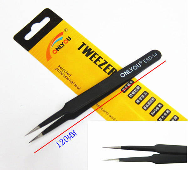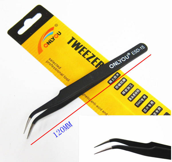 Brand: ONLYOU Model: ESD-10/11/12/13/14/15/16 Material: stainless steel Surface treatment: processed in high temperature and planting antistatic material Type of tip: pointed and curved Weight: 155G Size:110mm~140mm are available