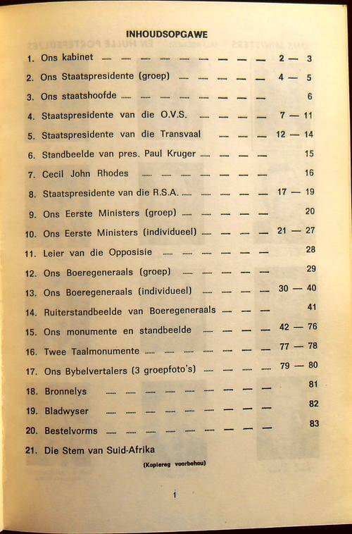 ONS GESKIEDENIS IN BEELD Fotoalbum van Ons Volksleiers en Volksmonumente deur E A Venter