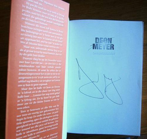 Book signed by Deon Meyer. Slight surface scratching on cover and faint creasing on spine. Rest of book in very good condition. Pages neat and clean, binding tight.