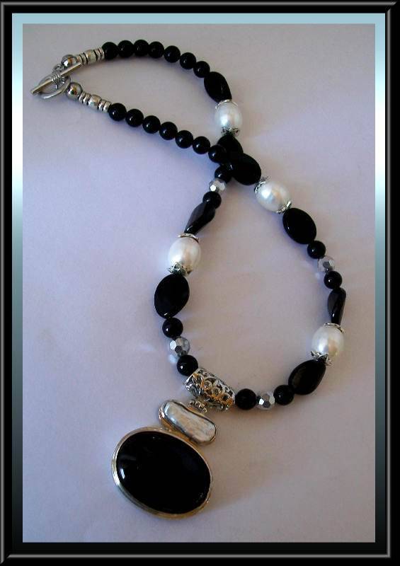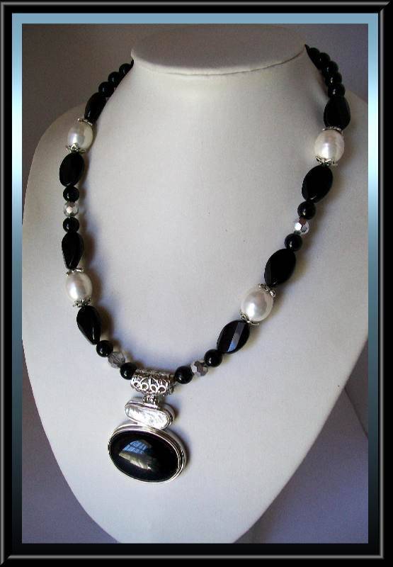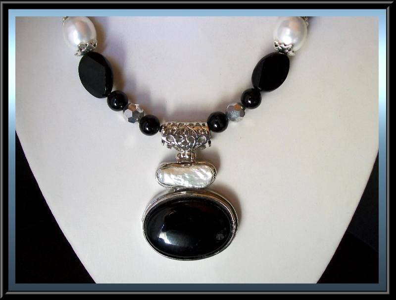 Onyx and Shell Pearls with Pendant