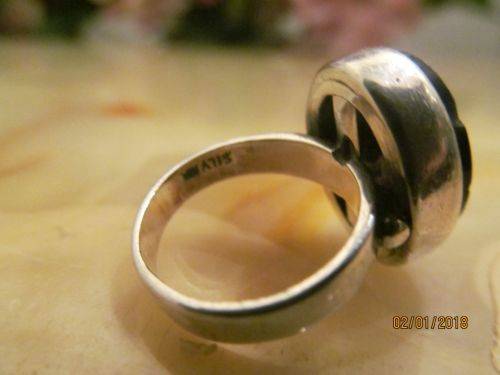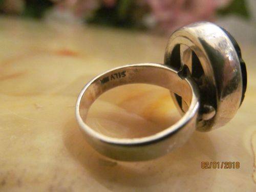 SIZE : 1.8cm DIAMETER OF RING.....1.4cm by 1.2cm OVAL ONYX