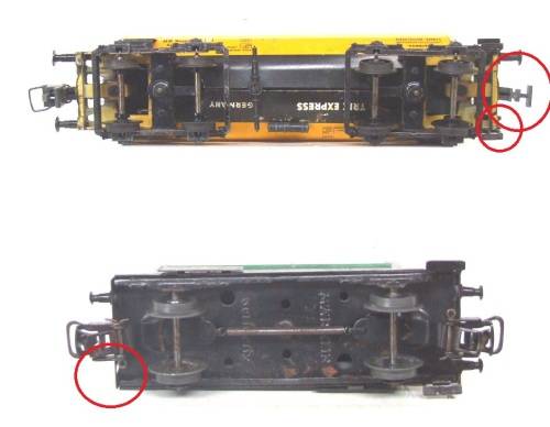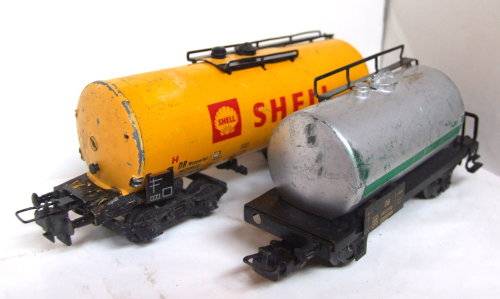 On auction are these vintage tankers in fair used condition, for the vintage collector. Corrosion on metal parts that was removed and treated. Paintwork and decals in fair condition, the Trix Express tanker is missing part of the coupler. Please see photos for detail for it is part of the description. Contact me by email for inquiries.