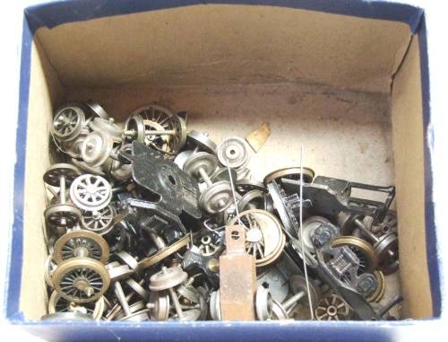 On auction is this mixed box of steam loco drive wheel sets of different sizes and axial's in like new condition. If you have TTR trains this will be a great buy for spares, sometimes these metal wheels worn out on the center where it fit on the axial then you have replacements at hand. These are rare items and is not readily available on the market. Please see photos for detail for it is part of the description. Contact me by e-mail for inquiries. Item sold as per photos, as is.