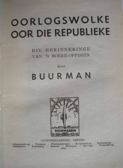 Oorlogswolke oor die Republieke deur Buurman1944. Vir sy ouderdom in steeds goeie kondisie.