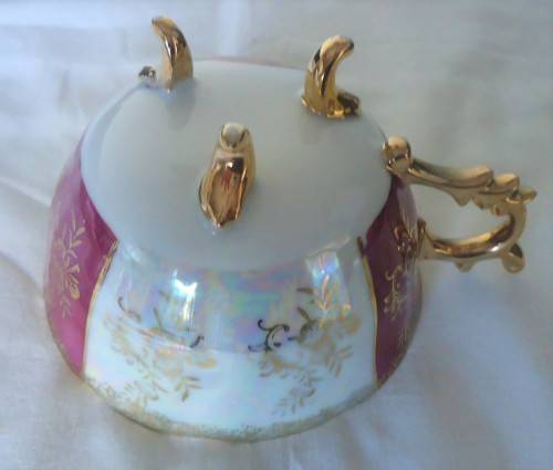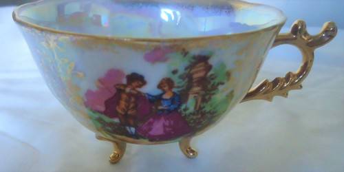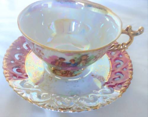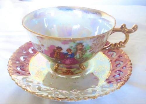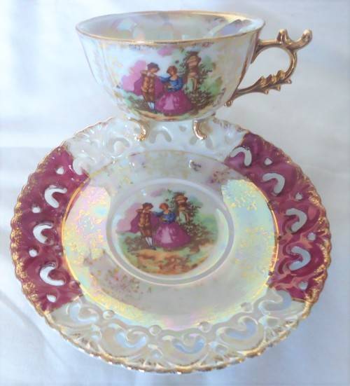 WITH GILT FOOTED CUP & LATTICE WORK SAUCER DUO