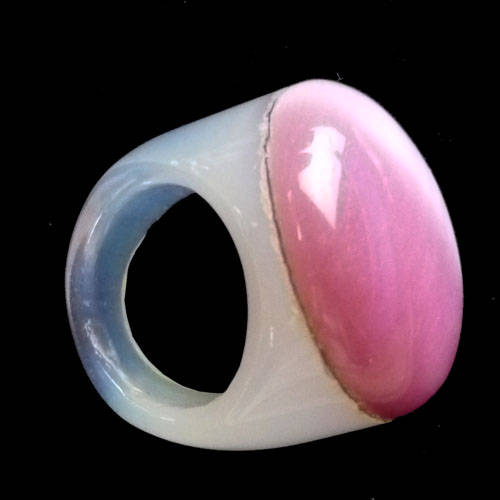 This unique style ring is CUT FROM OPALITE AND CATS EYES