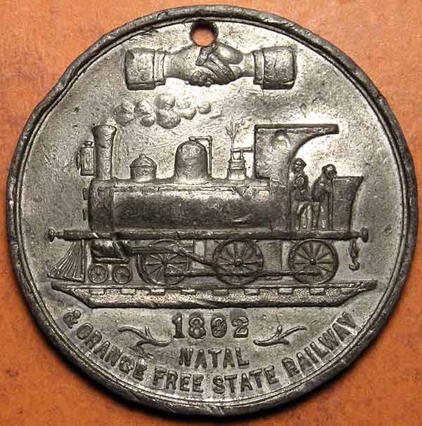 A Medal to Commemorate the Opening of the Railway line from Ladysmith in Natal through through the Van Reenen Pass in Drakensberg Mountains to Harrismith in the Orange Free State. The line was completed in 1892. This is a scarce medal. Reference: www.southafricanmedals.com No. 0593.