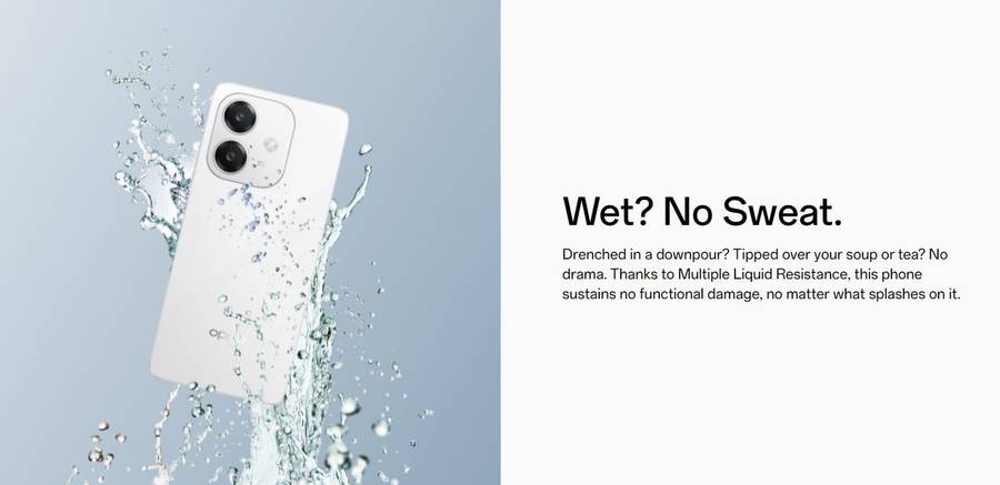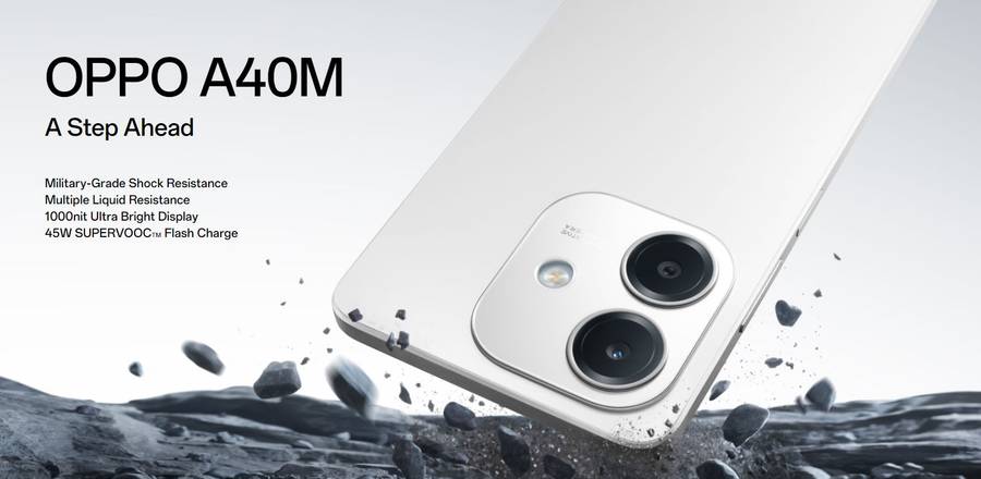 All-Round Armour. Shields your phone from those everyday knocks and bumps. The OPPO A40M smartphone has military-grade shock resistance, multiple liquid resistance, a 1000nit ultra bright display and a 45W SUPERVOOC flash charge.