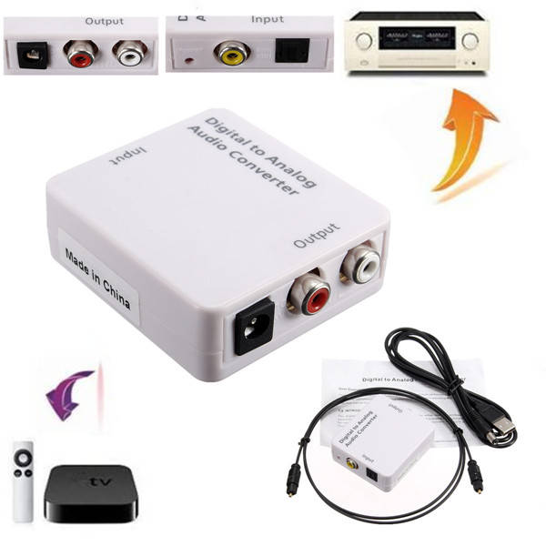 Optical Digital Coaxial Toslink Signal To Analog Audio Converter Adapter DC 5VDescription:This Digital to Analog Audio Converter is designed for either home or professional audio switching. It converts coaxial or toslink digital audio signals to analog L/R audio and available for connection to an external device such as an amplifier via standard RCA jacks.
