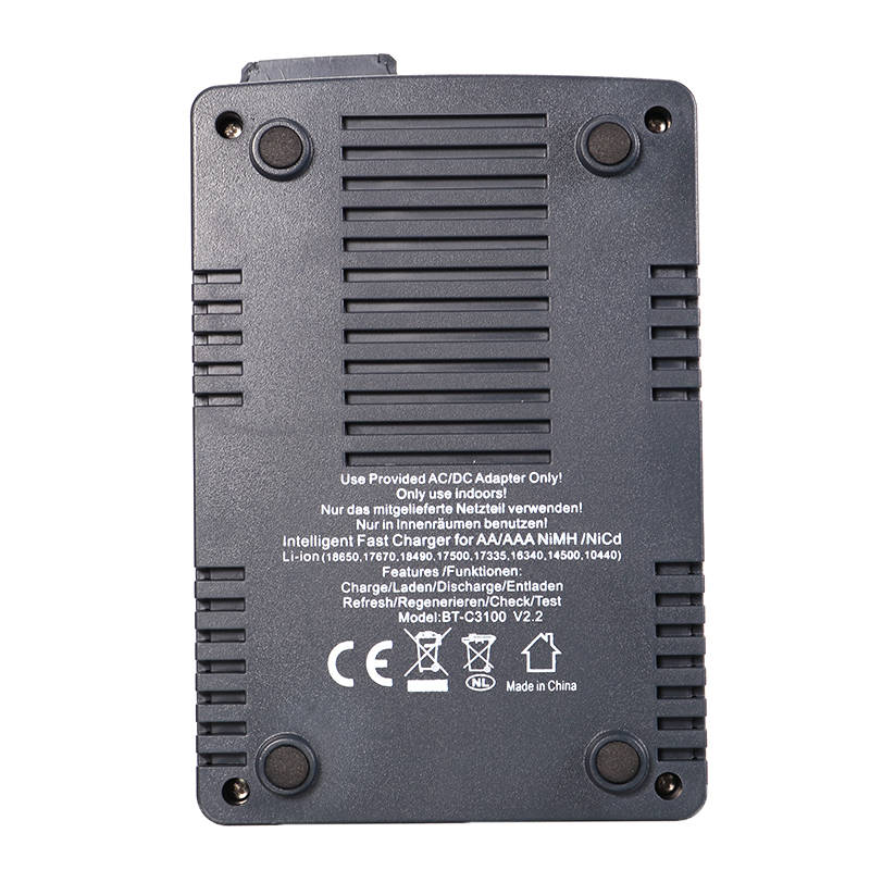 Compatible with:AA ( LR6 ) and AAA ( LR3 ) NiCd, NiMH or 3.7V Li-ion rechargeable batteries in size type of 10440, 14500, 16340, 17335, 17500, 18490, 17670, 18650