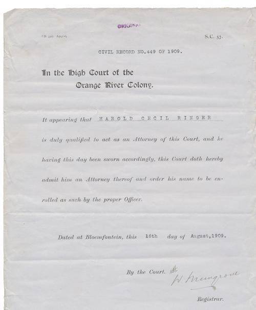 1909. Admission of Attorney of the Court. With revenue Stamps.