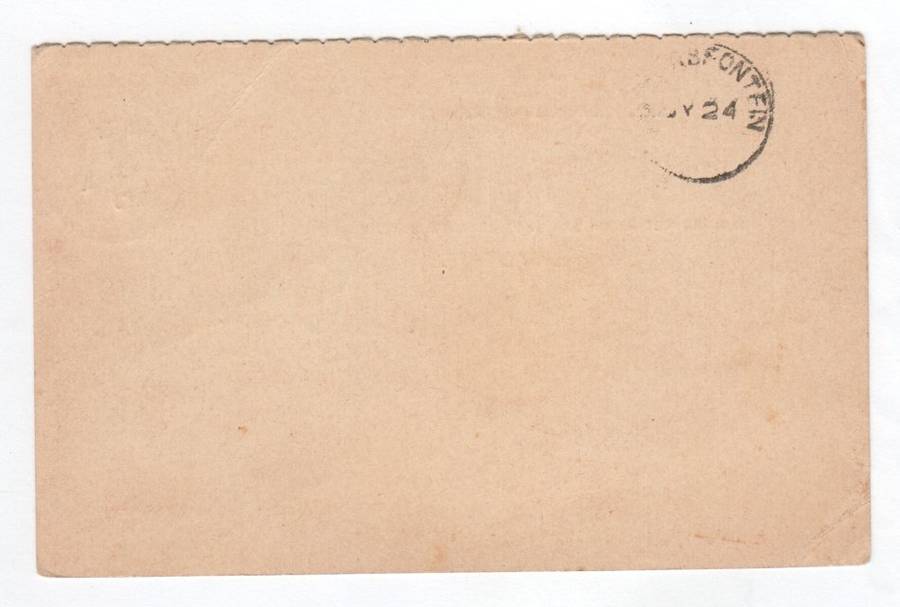 Oranje Vrij Staat ''reply paid'' Brief Kaart sent from Fauresmith South Africa to Jagersfontein South Africa 29 July 1929 with preprinted Half penny stamp and Fauresmith cancellation - backstamped with Bloemfontein cancellation