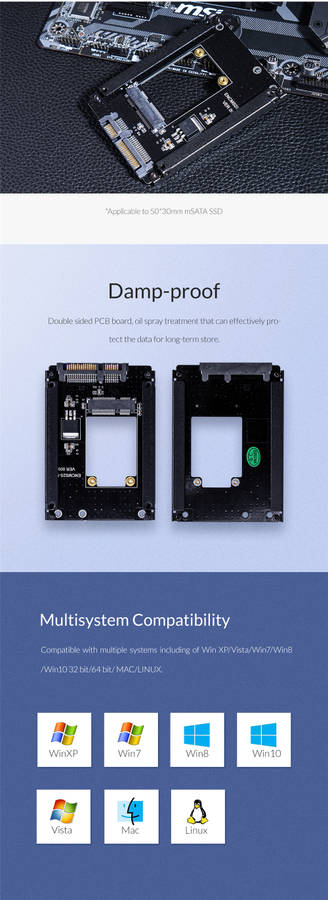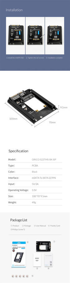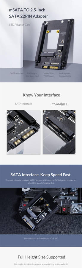 â Full height size supported. Full height size, delicate process, screws locking, stable and solid. Applicable to 50*30mm mSATA SSD
