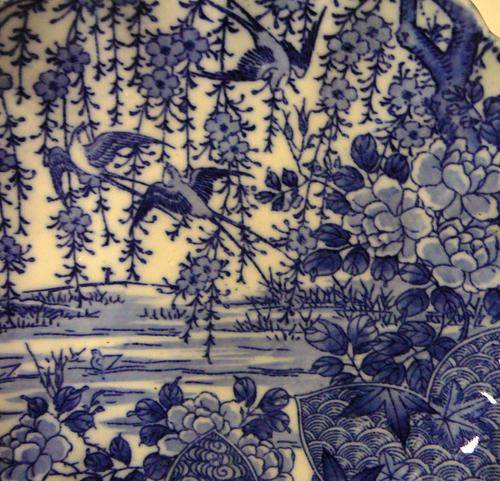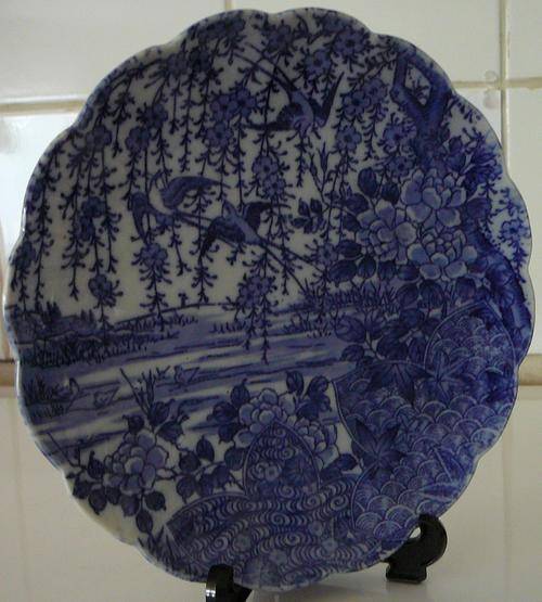 This attractive Blue and White is decorated with Flowers and Birds, the rim of the plate is scalloped, there are no marks of origin or makers marks. It is 214 mm in diameter and weighs 400 grams.