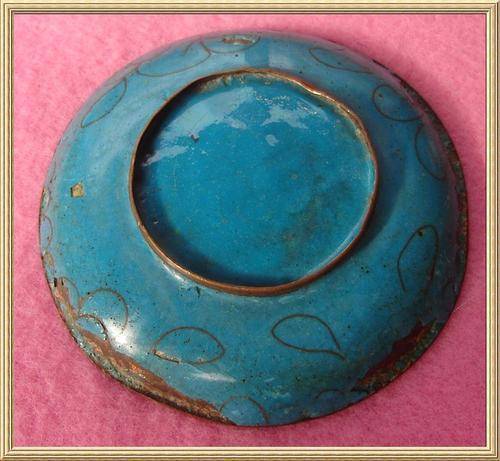 Oriental Cloisonne " Dragon " Plate, with wear, copper rim, 9.5cm diameter.