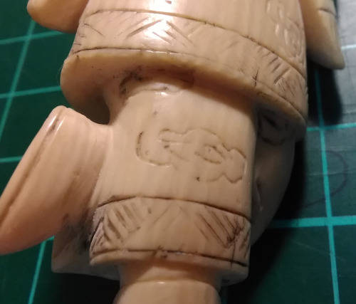 Not an original Netsuke. Man made clasp on the back and not 2 holes in the back.
