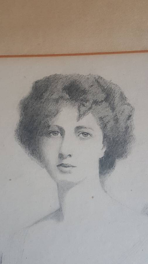 Incredibly skilled and fine work in this Edwardian pencil drawing of a lady. Hand signed M.J. Whiteley and dated April 1904.