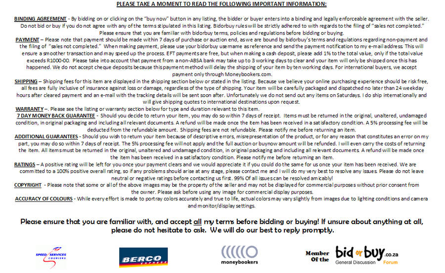 Other shipping options available on request.