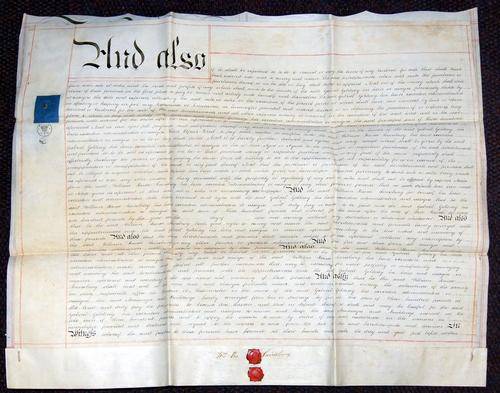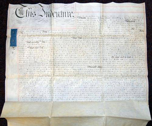An indenture is a legal contract between two parties particularly for indentured labour or a term of apprenticeship but also for certain land transactions. The term comes from the medieval English "indenture of retainer" a legal contract written in duplicate on the same sheet, with the copies separated by cutting along a jagged (toothed, hence the term "indenture") line so that the teeth of the two parts could later be refitted to confirm authenticity. Each party would then retain a part.