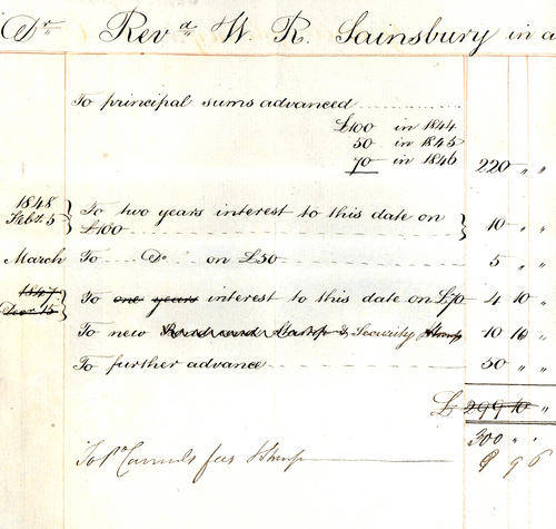 Original separate journal entry in ink on paper setting out the debt, included in this auction