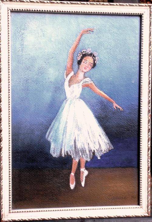 ORIGINAL PAINTING ON BOARD - FRAMED IN WHITE AND GOLD FRAME. SIGNED AND DATED (hard to read) SIZE: 26CM X 18CM (includes frame of 1.3cm wide)