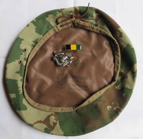 ORIGINAL BERET WITH CAP BADGE & BAR ALL WITH MARKINGS & ENDORSED BY THE 32 BATTALION VETERANS ASSOCI