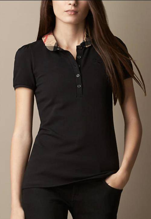 A feminine polo shirt cut in stretch piqué cotton. Slim fitting, the classic shirt features gathered sleeves and a check collar.