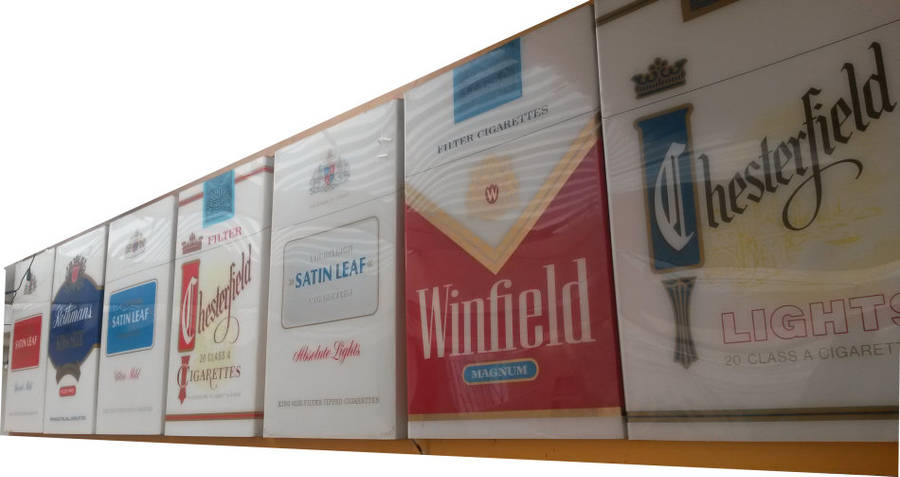 Perspex cigarette signage from shop fitting ( from before the cigarette warnings came out )