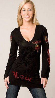 ORIGINAL!! ED HARDY BLACK LADIES LONG SLEEVE SHIRT SIZE: 10