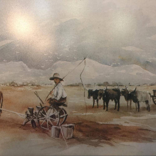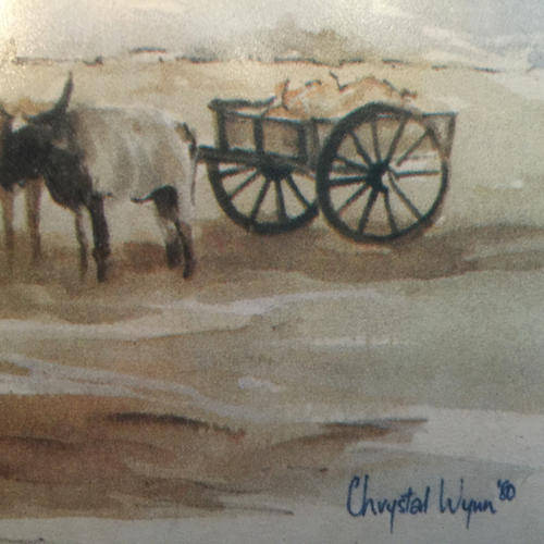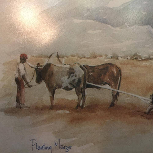 Original Framed Chrystal Wynn Watercolor Landscape - "Planting Maize" (400 x 240)