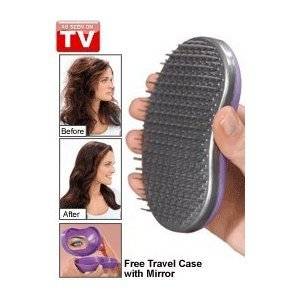 HAIR BEAN IS THE REVOLUTIONARY DE- TANGLING BRUSH SEEN ON NATIONAL TV. IT HAS BEEN PRECISION ENGINEERED WITH SPECIALLY DESIGNED ALTERNATING BRISTLES AND MEMORY FLEX TECHNOLOGY TO EFFORTLESSLY GLIDE THROUGH YOUR HAIR TO GENTLY REMOVE TANGLES, QUICKLY AND PAIN FREE. USE HAIR BEAN TO GIVE YOUR HAIR SMOOTH, SHINY LOOK THAT EVERYBODY LOVES.