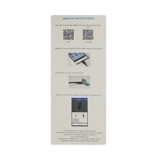 Note : This MINI KD only supports Android devices, and it is a remote generator not a programmer.