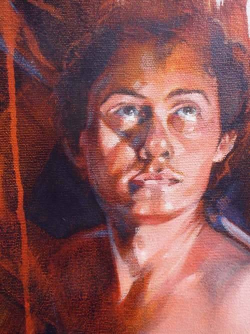 ORIGINAL by WELL KNOWN KZN ARTIST, CORAL SPENCER - OIL ON CANVAS ON STRETCHER FRAME, READY TO HANG. INTERESTING MALE NUDE STUDY - VERY WELL EXECUTED BY PROFESSIONAL ARTIST. SIZE: 50.5CM X 35.5CM.